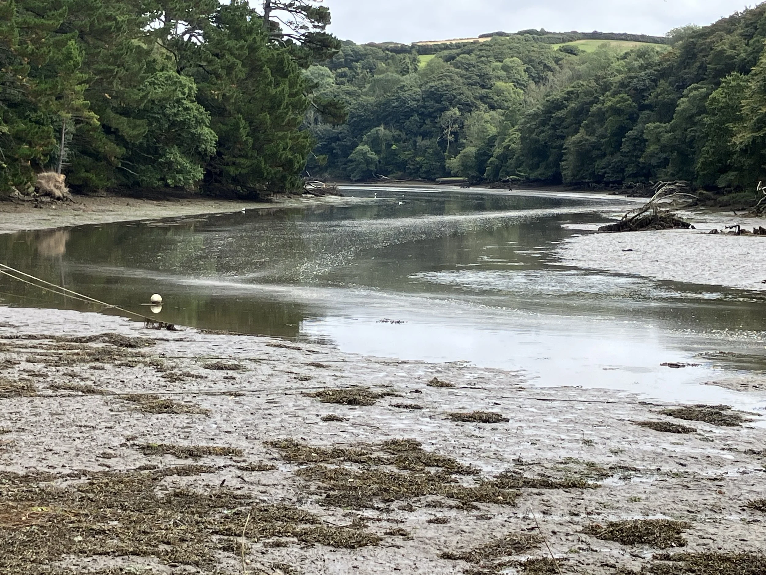 Around two weeks later, the story moves on to Cornwall. A different character has a different experience…it’s another place. Gillan Creek, in Cornwall is a winding, tree-lined inlet to the south of the Helford River and only a few miles from Falmouth as the crow flies. To really experience my character in his setting, I spent a day here and watched the tide coming in. Here it is, washing in quite fast over the muddy banks. At high tide, the water becomes still for an hour or so, the perfect time for a clandestine operation under the cover of darkness.